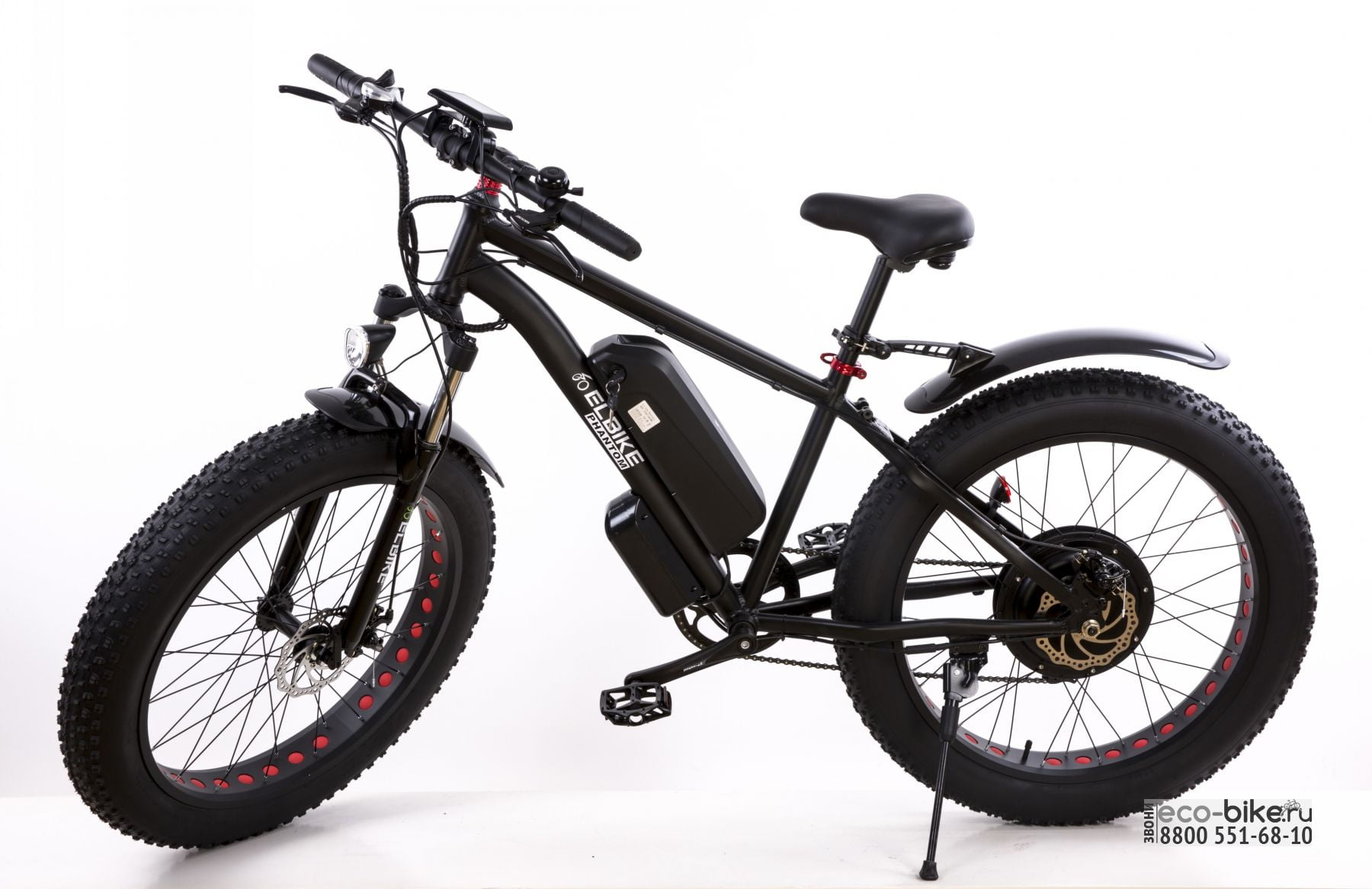 Суперновинка на рынке электровелосипедов от Elbike - фэтбайк Phantom мощностью 1000 ватт. Его характеристики позволят преодолевать самые труднодоступные и труднопроходимые районы в любую погоду. Дутые колеса помогут ехать по болоту, грязи и снегу.
